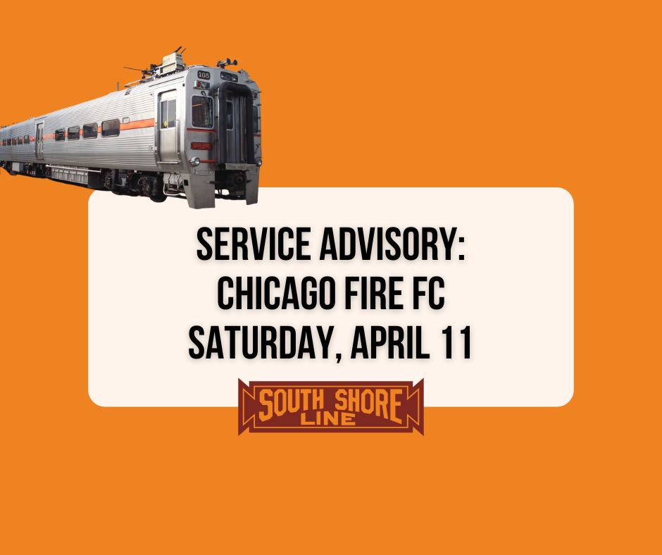 To accommodate passengers attending the Chicago Fire FC match taking place at 7:30 p.m., Saturday, April 11, 2026, at Soldier Field, the South Shore Line plans to stop select trains at Metra’s 18th Street Station, which connects passengers directly to the Soldier Field entrance via a pedestrian walkway.