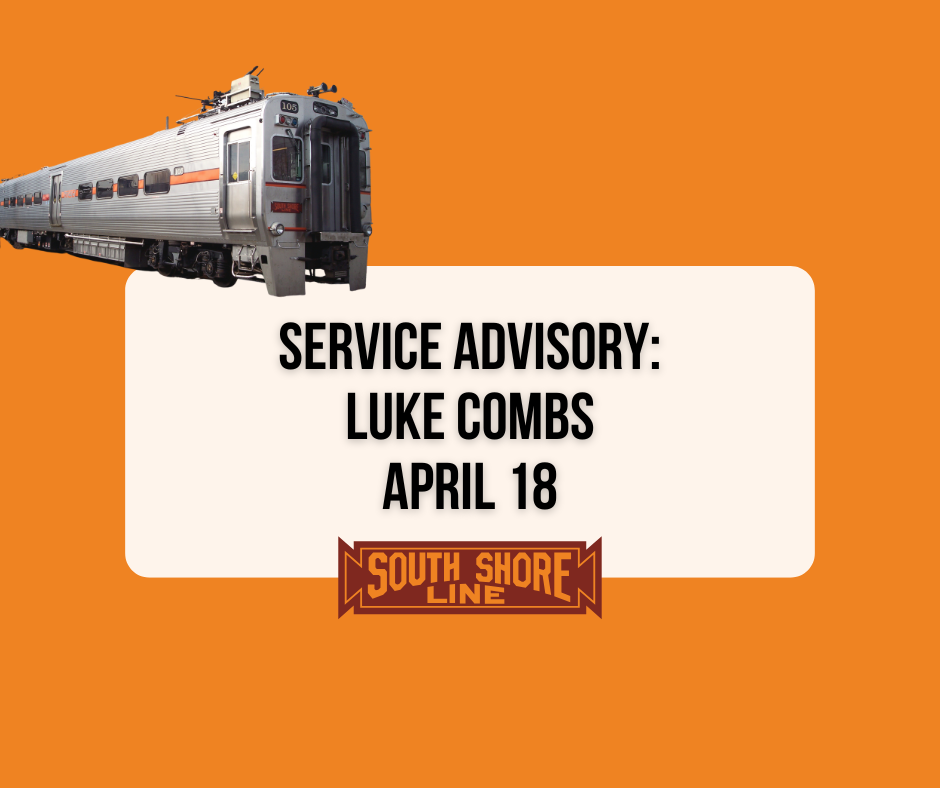 The South Shore Line will provide additional service to accommodate passengers attending the Luke Combs concert taking place at 5:20 pm ET on Saturday, April 18, 2026, at the University of Notre Dame Stadium.