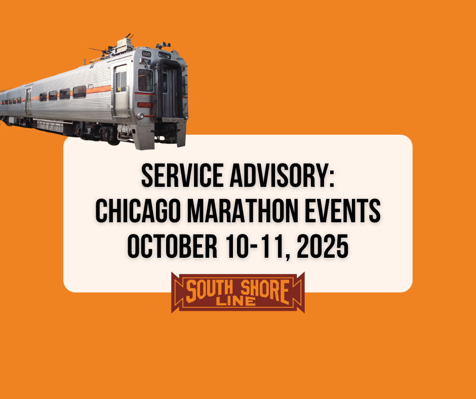 Calling all Bank of America Chicago Marathon runners and observers: The South Shore Line invites you to leave your vehicle at one of our convenient stations in Indiana and take the South Shore Line to Chicago for all Bank of America Chicago Marathon events.