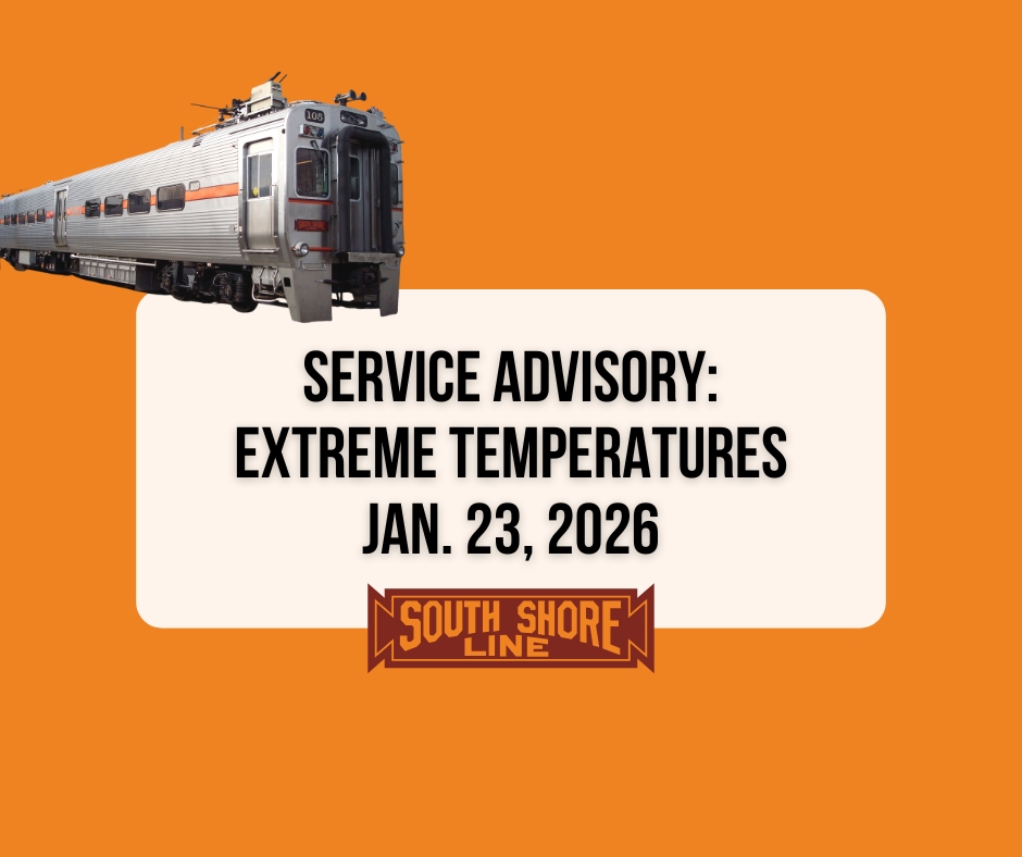 Passengers are advised that the South Shore Line will operate a WEEKEND/HOLIDAY train schedule on Friday, Jan. 23, 2026, due to severe sub-zero temperatures and dangerously cold wind chills.