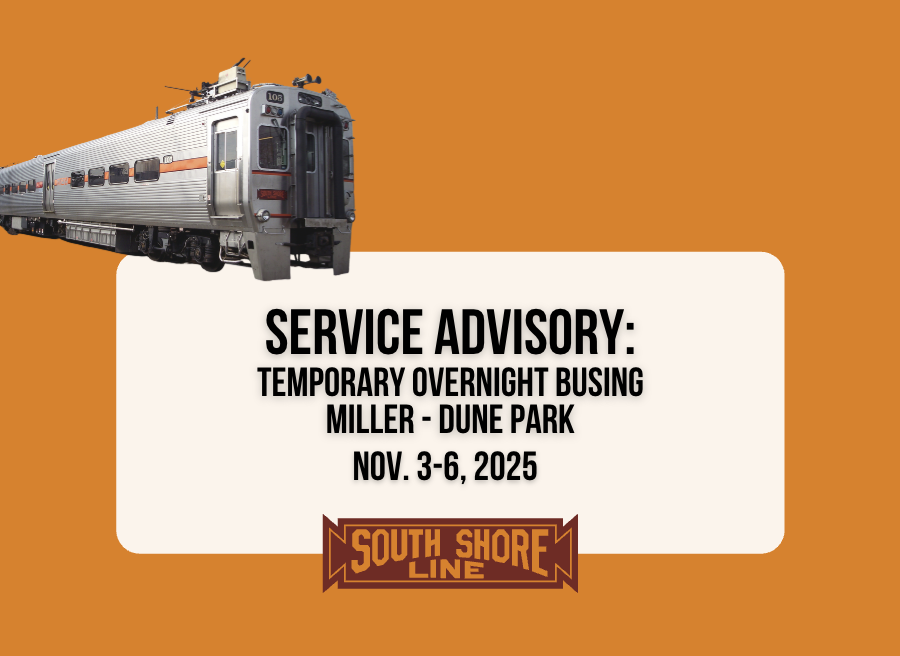 In order to accommodate INDOT bridge construction near South Shore Line tracks in Portage, the SSL will provide temporary busing substitution for late evening/overnight train passengers beginning Monday, Nov. 3, through overnight Thursday, Nov. 6, 2025.